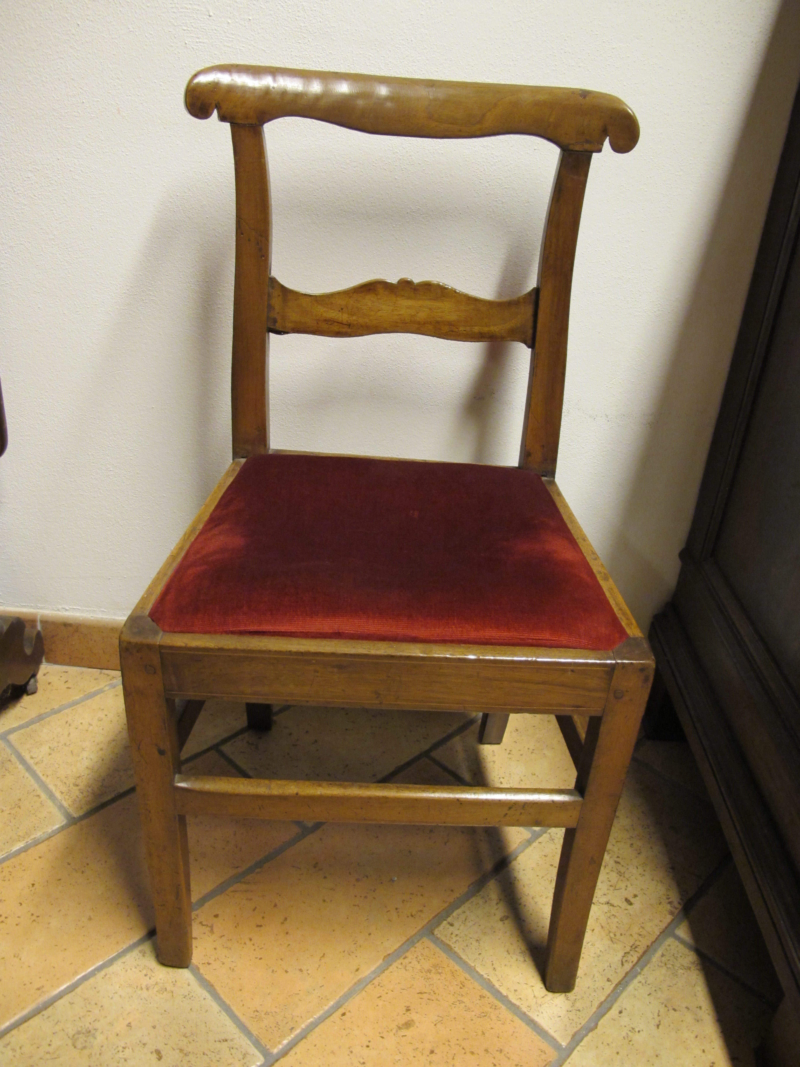Late 19th Century four "Carabinierine" lovely chairs with purple upholstery. Cm 78x41x38