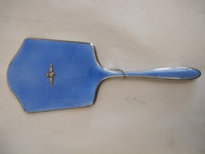 Stunning silver and light blue enamel mirror with Royal Air Force coat of arms. Birmingham 1932. Cm 27x 10